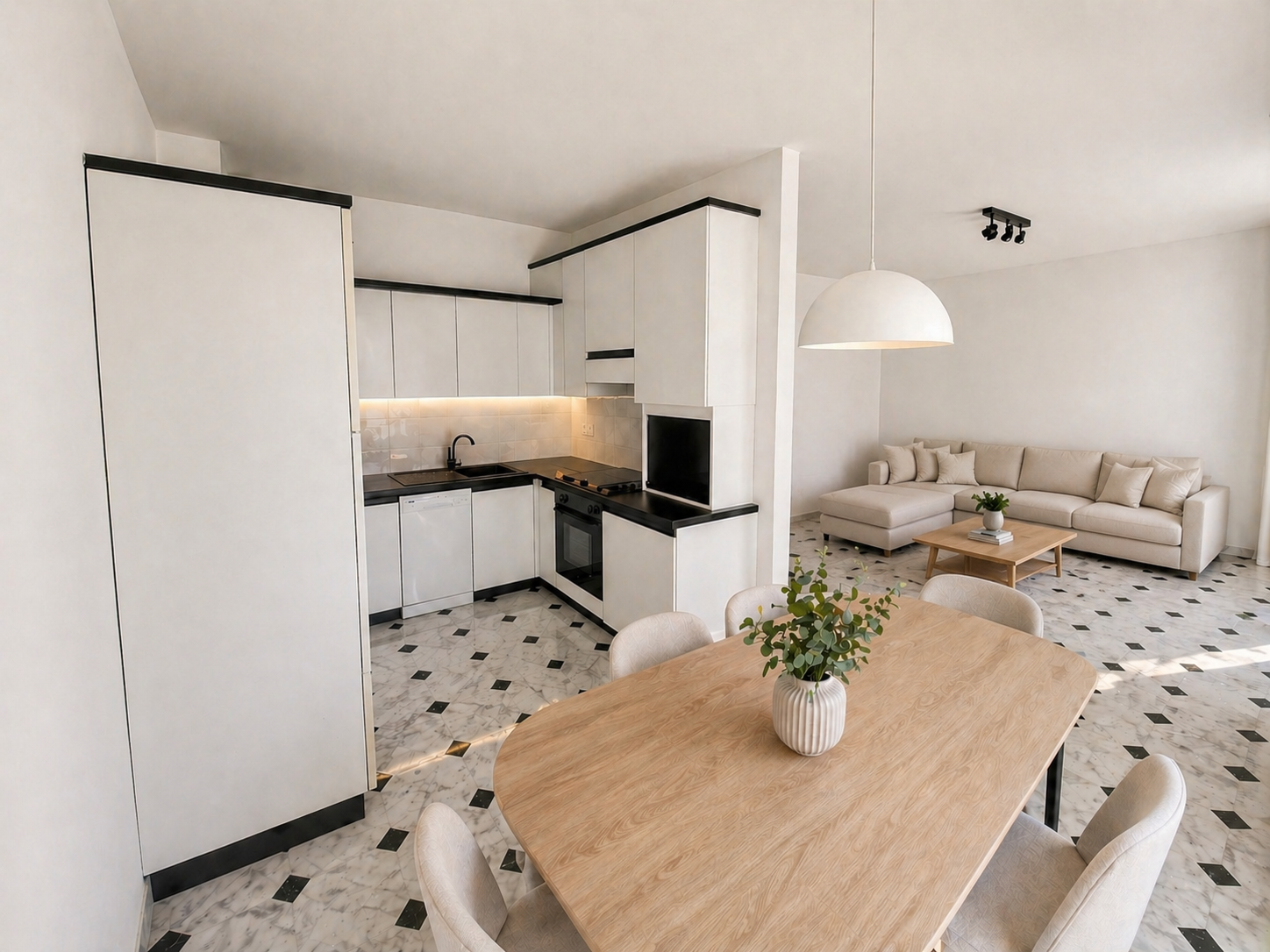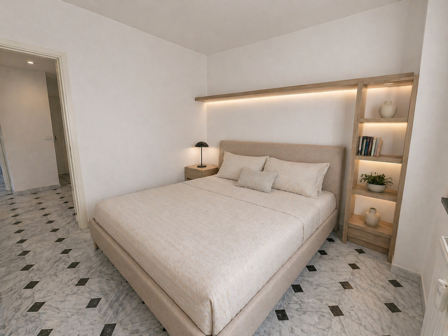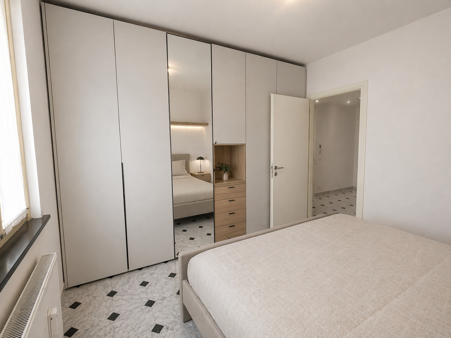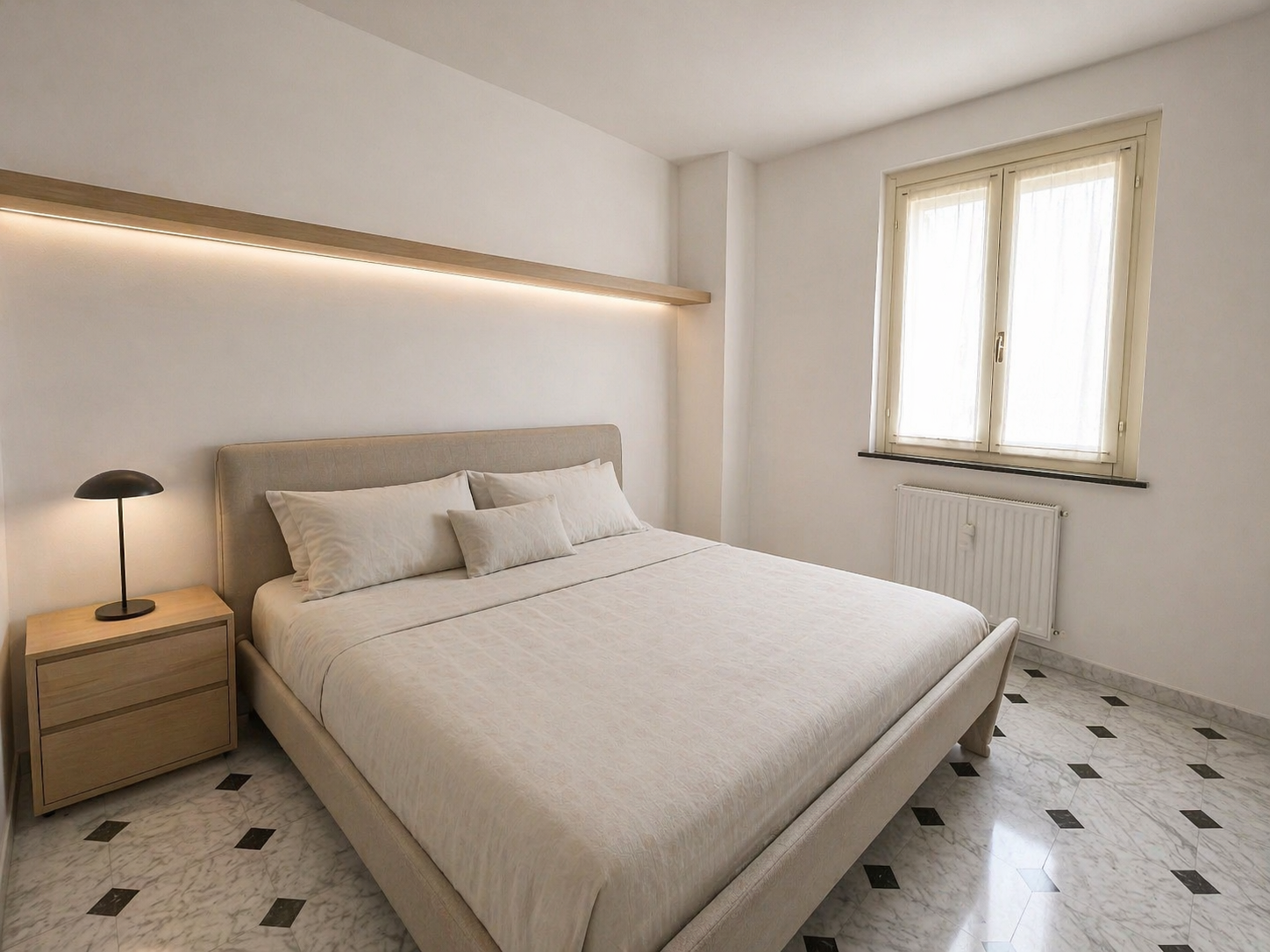 L’appartamento situato al sesto piano con una meravigliosa vista mare è così composto: ingresso, soggiorno luminoso con angolo cottura, ripostiglio, camera da letto matrimoniale e bagno cieco.