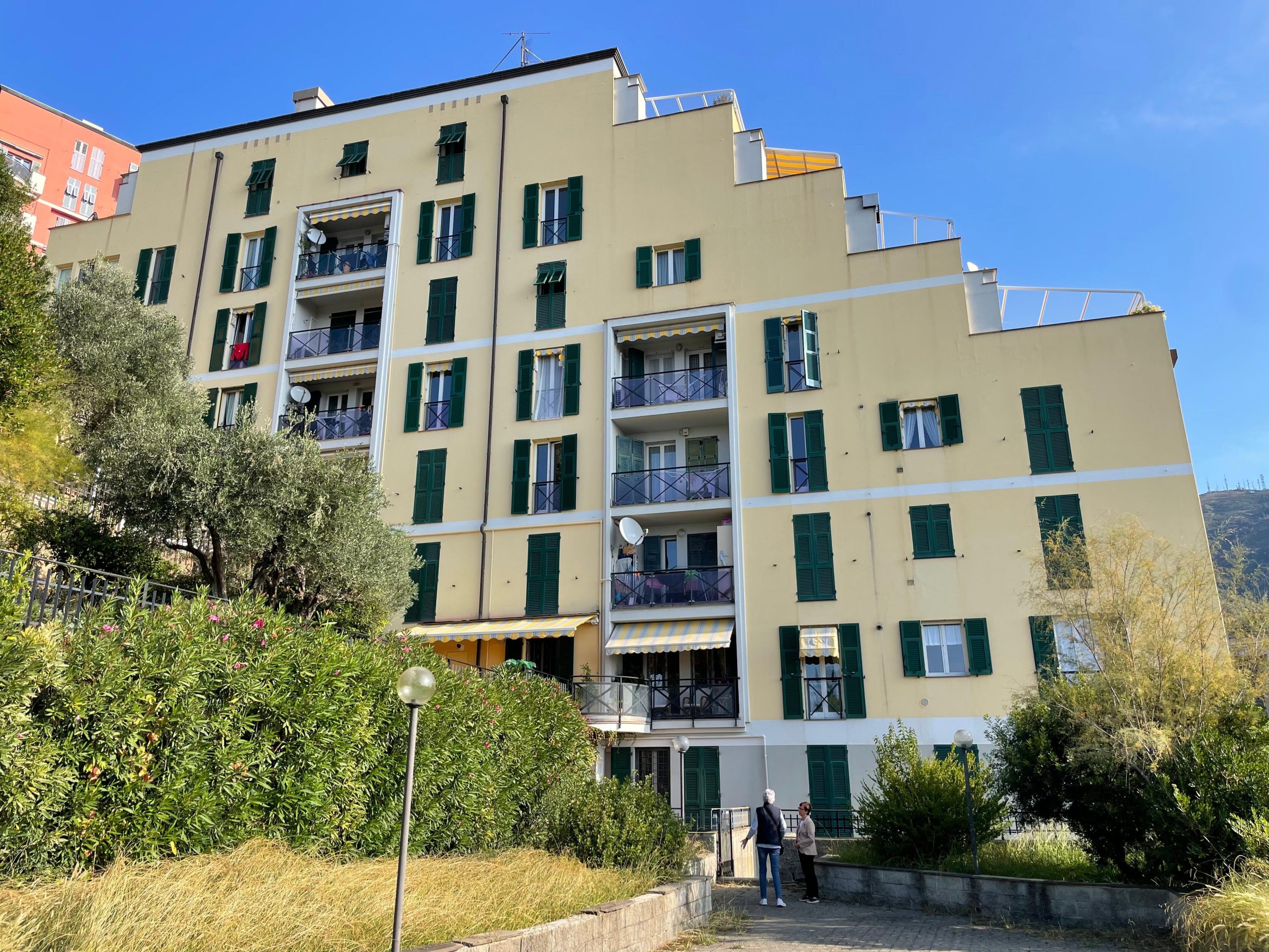 La palazzina ha un doppio accesso sia da Via delle Campanule sia da Via degli Iris ed entrambi gli ingressi sono dati di ascensore per raggiungere il sesto piano. E’ presente un ampio spazio condominiale dove è possibile passare dei momenti di relax e godersi la vista mare.
