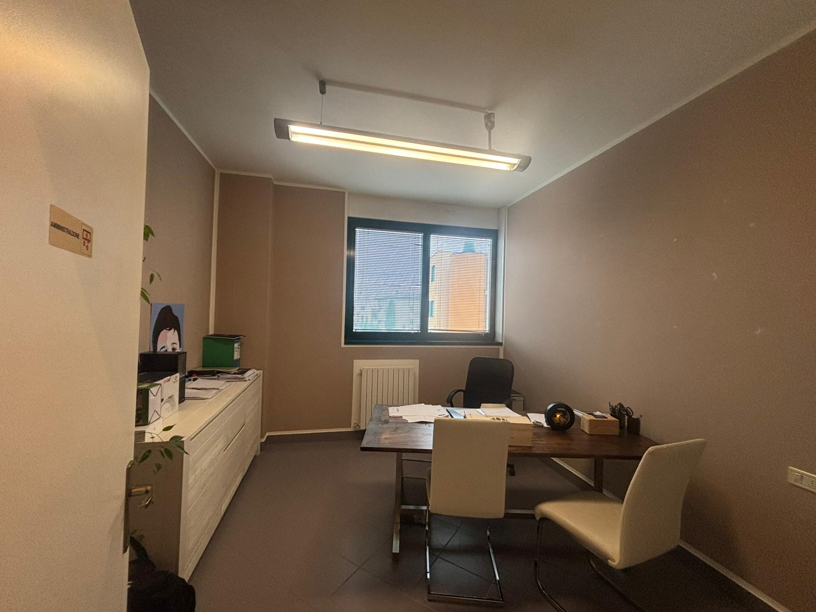 La zona uffici di 140 mq è dotata di riscaldamento autonomo, impianto di condizionamento caldo/freddo ed impianto di allarme. Gli infissi sono in alluminio con veneziane.