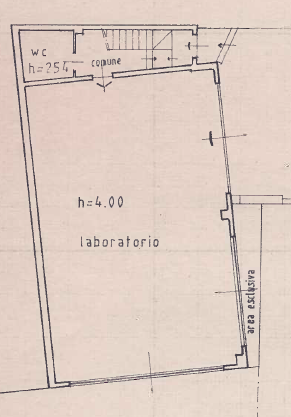 Questo capannone si sviluppa su due livelli: al piano terra troviamo un laboratorio di circa 140 mq con bagno; il piano primo si sviluppa con un open space molto luminoso con un primo bagno ed un locale archivio, tramite un disimpegno si accede ad una seconda zona con una sala riunione, un secondo ufficio, archivio e bagno.