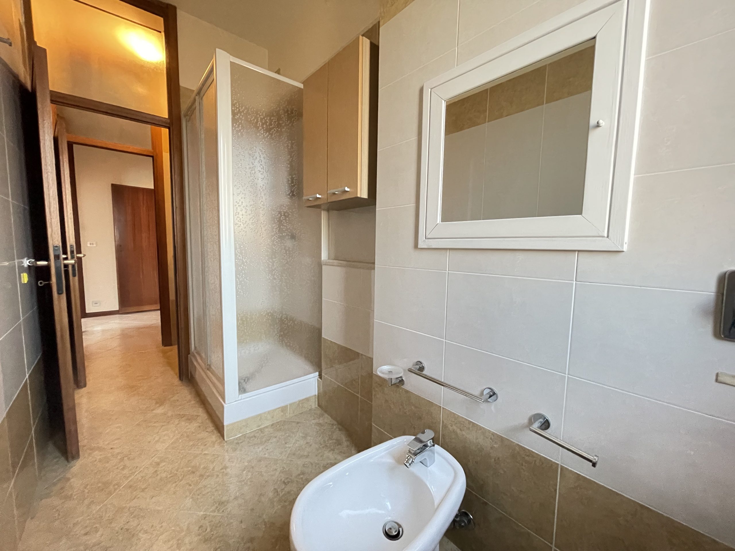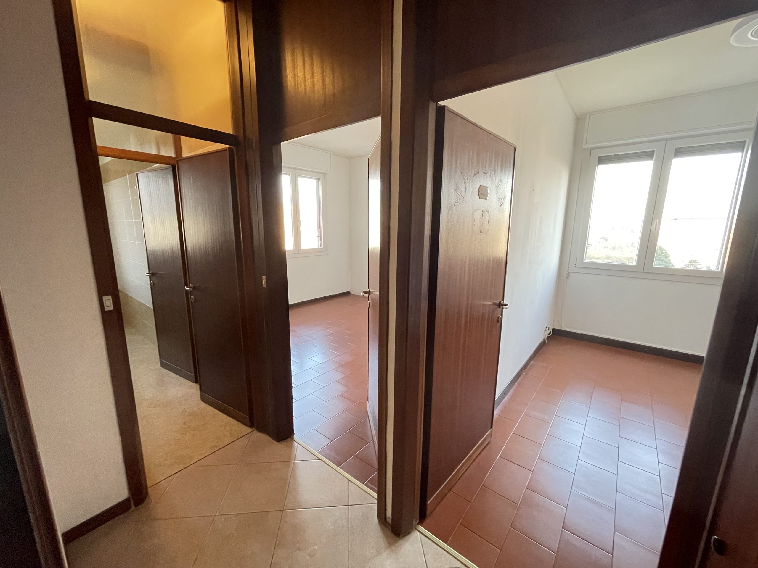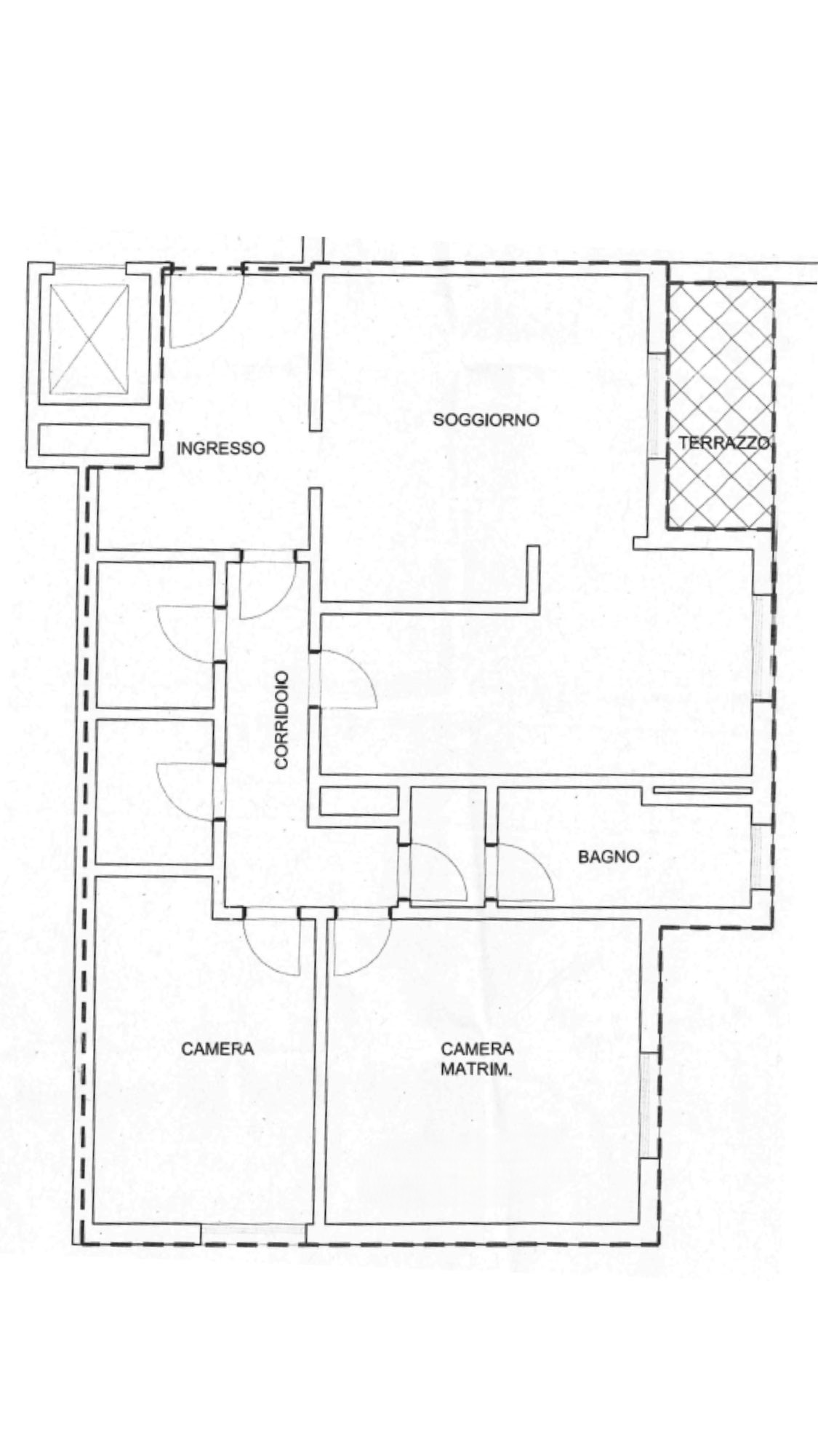 Questo luminoso trilocale servito da ascensore è composto da: ingresso, soggiorno con grande balcone panoramico, cucina abitabile, camera da letto matrimoniale, camera da letto, bagno e due comodi ripostigli.